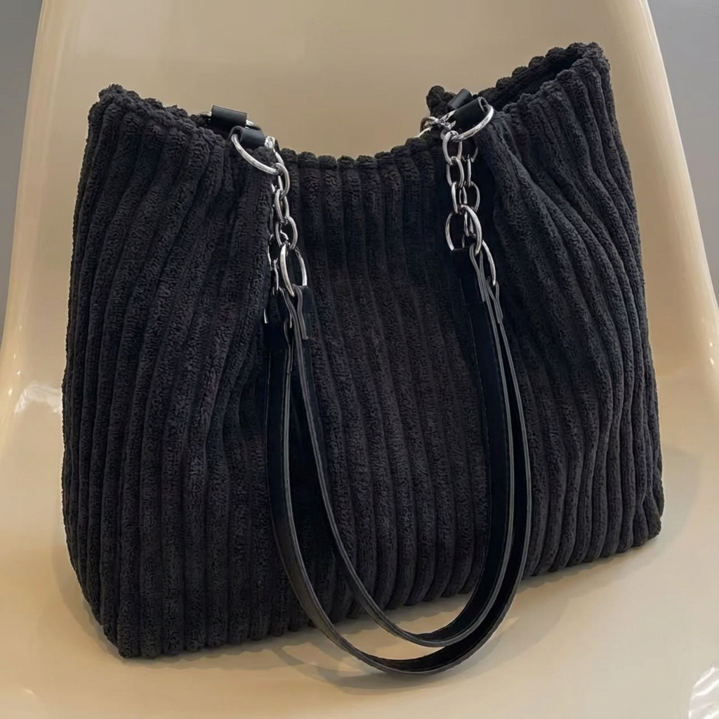 The Corduroy Tote Black - Classic Elegance Reimagined