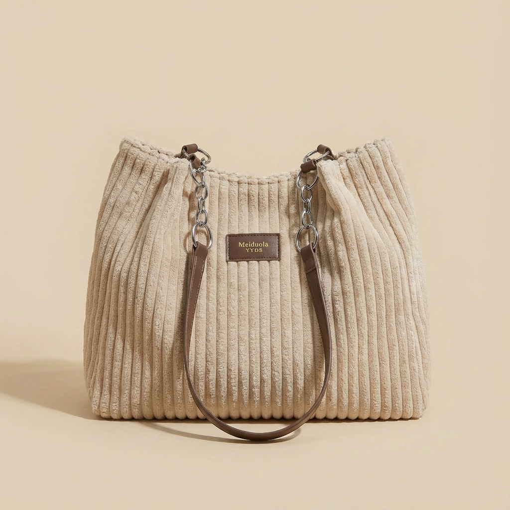 This isn't just another handbag – it's your reliable companion for modern living. The soft corduroy texture adds tactile luxury whilst the structured silhouette maintains its elegant shape. Whether you're heading to a gallery opening or meeting friends for afternoon tea, this tote adds an effortlessly chic finishing touch to any ensemble.