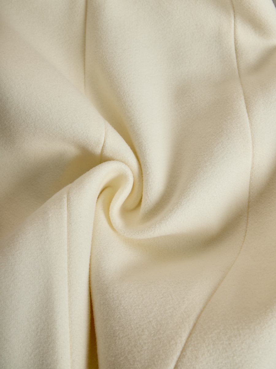 Mooyius introduces an ivory flared coat that radiates sophistication and timeless winter glamour. The design features a cinched waist that gently flows into a full A-line silhouette, creating a graceful and flattering shape. The statement faux fur collar and matching fur-trimmed cuffs exude luxury while providing cozy warmth, making this piece ideal for cold-weather elegance. Delicate dark buttons at the front add refined contrast against the ivory fabric, enhancing the overall polished aesthetic. Practical side pockets ensure functionality without compromising its sleek lines.