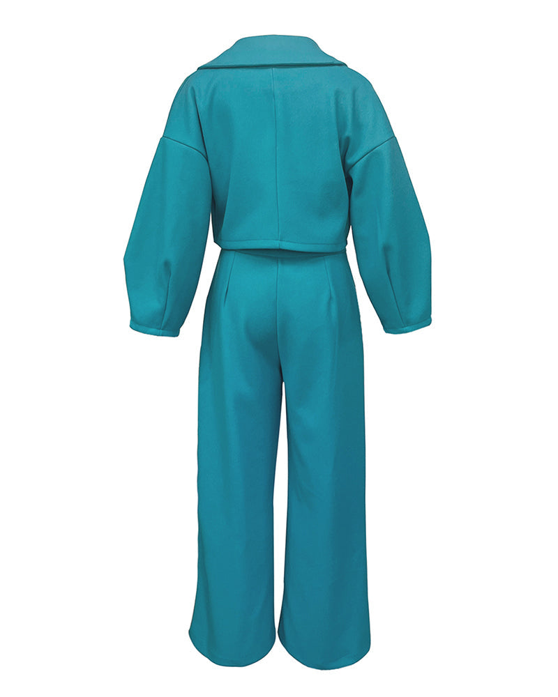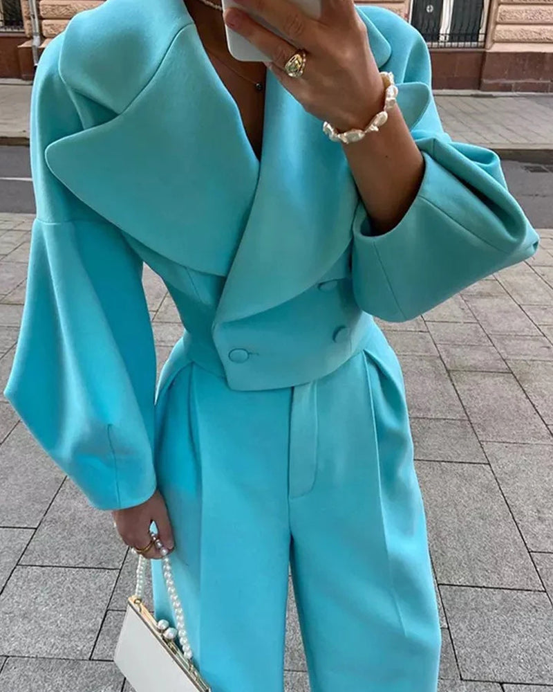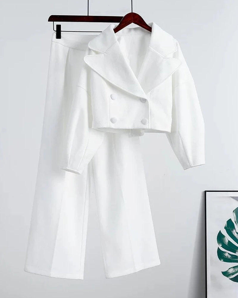 Smart Casual Tweed Lapel Coat Pants Set