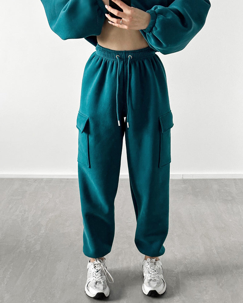 • Bottom: Elastic waistband with adjustable drawstring, side flap pockets